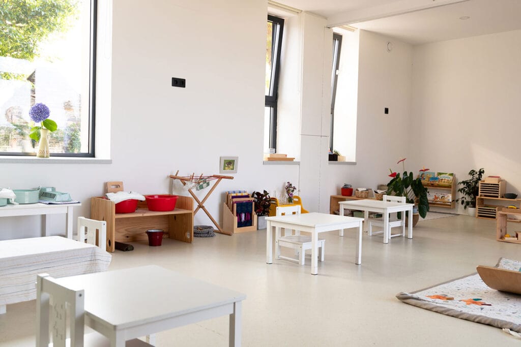 Aquí, los niños y niñas de 1 a 3 años descubren, juegan y aprenden en un entorno preparado, tranquilo y respetuoso, con acompañamiento de una guía formada por AMI.
